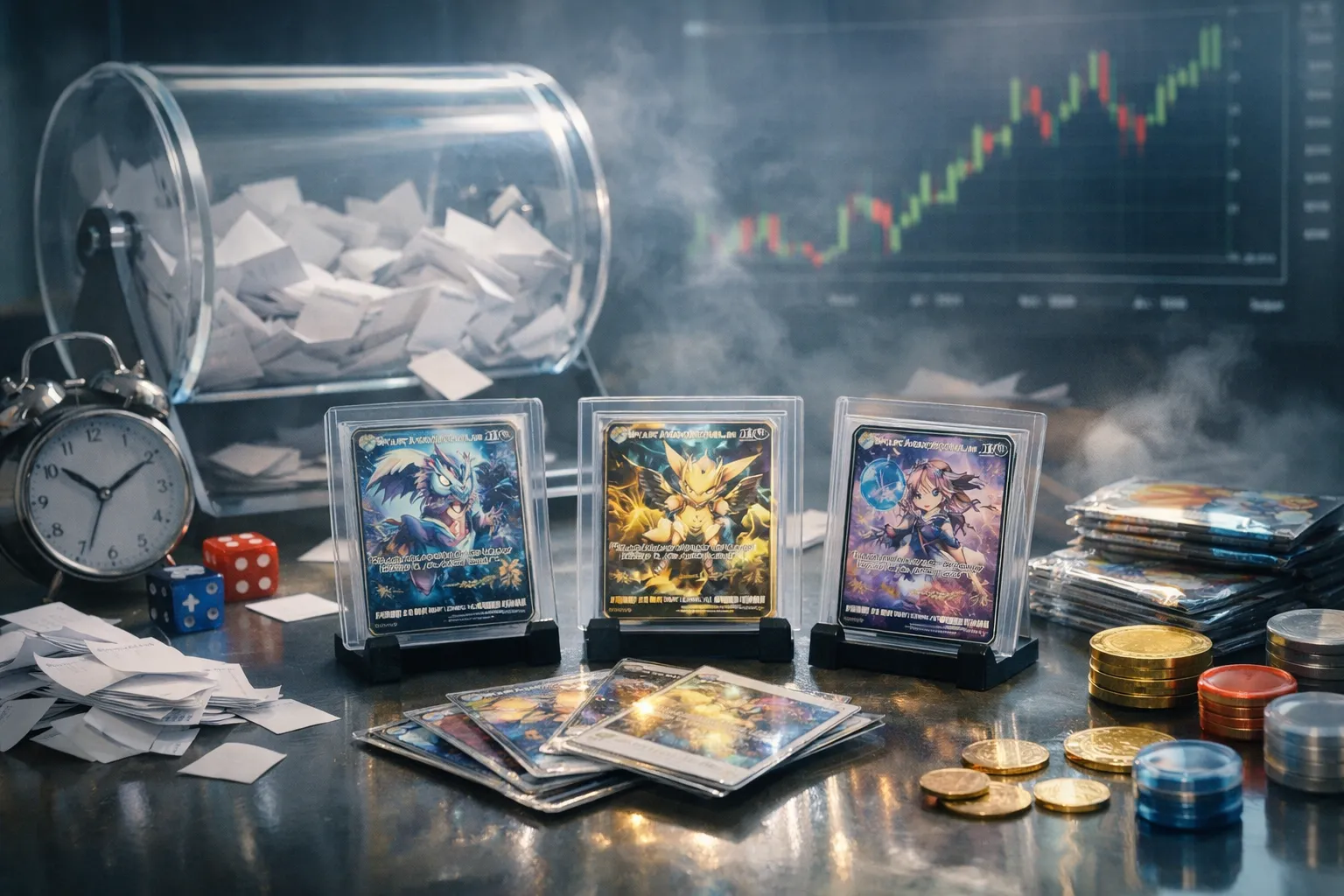 ムニキスゼロのような商品では、発売直後から数日間で特徴的な動きが見られます。抽選で当選したものの不要になった分や、引き取り期限を過ぎた在庫が、二次流通に流れ込むケースです。フリマアプリやオリパ(オンラインで引けるカードくじ)などで見かけるようになるのは、このタイミングが多いと言われています。